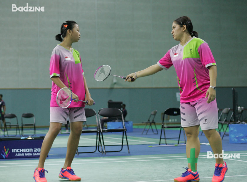 China’s Cheng Hefang also had the chance to be a double gold medallist in the standing events. She took gold in the women’s doubles, a round-robin event, but lost in the women’s singles final to compatriot Sun Shouqun (pictured above). Leani Ratri Oktila and Khalimatus Sadiyah (pictured below) contributed a silver in the women’s standing doubles.