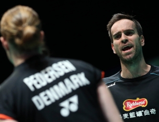 The two Danish coaches struggled to get between games to cover all their players on court as the team had so many players competing, in stark contrast to last year’s underwhelming efforts at the Yonex All England. Solid play saw none of the Danes requiring the full three games, which would have been a relief as Mads Pieler Kolding, Christinna Pedersen (pictured left with mixed partner Joachim Fischer Nielsen), and Kamilla Rytter Juhl all progressed in two disciplines.