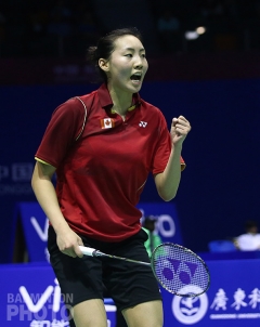 Elsewhere, there was some excitement as well. Michelle Li (photo) took one hour and 19 minutes to beat the reigning World Champion Carolina Marin, saving 5 match points – any one of which would have clinched the tie for the Spanish team – before a 24-22 win in the decider. Unexpectedly, the Netherlands beat Singapore and came on top of their group, as did Hong Kong after their easy win over the USA. The Canadians finished at the bottom of Level 2 Group A but only after losing each of their three ties by a single match.