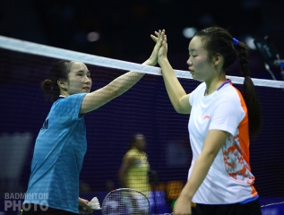 Another re-match took place in the women’s doubles, pitting the newly formed pair of Jang Ye Na / Jung Kyun Eun against Vivian Hoo and Woon Khe Wei (pictured) for the second time in five days. Once again, the Koreans come out winners, although the Malaysians presented a huge fight, this time grabbing the first game by the slight margin of 23-21.
