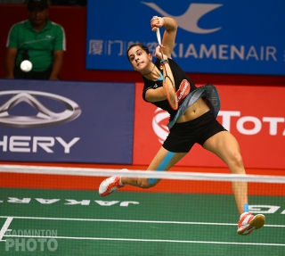 But it was the most recent history that seemed to make the difference in today’s match against Carolina Marin (pictured) of Spain. Nor does that mean the fact that Marin already took this title a year ago. Rather, the difference seemed to be Sung’s eighty-two minute marathon against P. V. Sindhu of India, the longest quarter-final match this year.