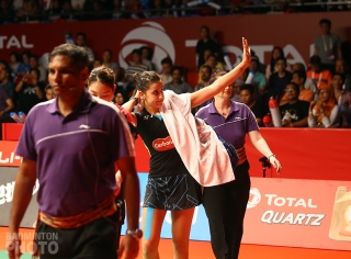 Asked about how she rebounded from losing to Sung in the German Open final (see related article here), Marin said, “I don’t want to think aobut the German Open because I lost that match because of the umpire. Of course, it was also my fault because I was thinking about the umpire. After that, I always think about my strategy and what I have to do on court.