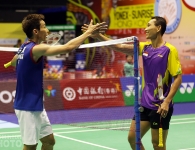 Late in the day came a couple of Korean pairs got the chance to right some ‘wrongs’ from last week’s Japan Open. Japan’s Takeshi Kamura / Keigo Sonoda added last week to an already long list of upsets of Korean players. They scored their 3rd career vitory over former World Champions Ko Sung Hyun / Shin Baek Cheol.