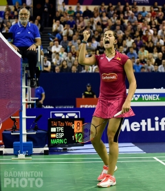 The two word-class players inaugurated the match evolving on the same level, displaying some great tactics and high techniques throughout the first half of their semi-final match. While Tai Tzu Ying decided to target Marin’s backhand, the Spaniard used her great movement and speed to outmanoeuvre the Taiwan player.