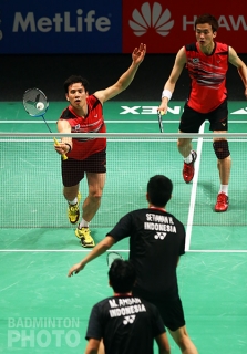 MD: Mohammad Ahsan / Hendra Setiawan (INA) [1] vs. Kim Ki Jung / Kim Sa Rang (KOR) [2]
