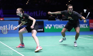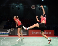 It would have been a first for both, but Denmark’s Christinna Pedersen and Joachim Fischer Nielsen (pictured) were the ones to grave the necessary tools and send the home pair Chris and Gabby Adcock (pictured below) out of the draw.