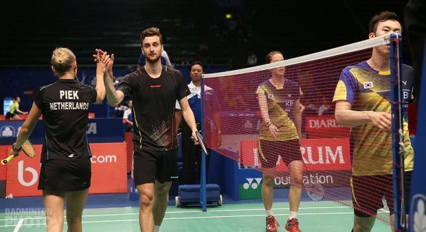 First up, it was Yoo Yeon Seong / Jang Ye Na (pictured above), starting in the morning against Jacco Arends / Selena Piek of the Netherlands. Yoo/Jang failed to get the points as they were under a lot of pressure from the Dutch pair. Arends/Piek kept pushing them until the last point and won 21-19, 21-13.