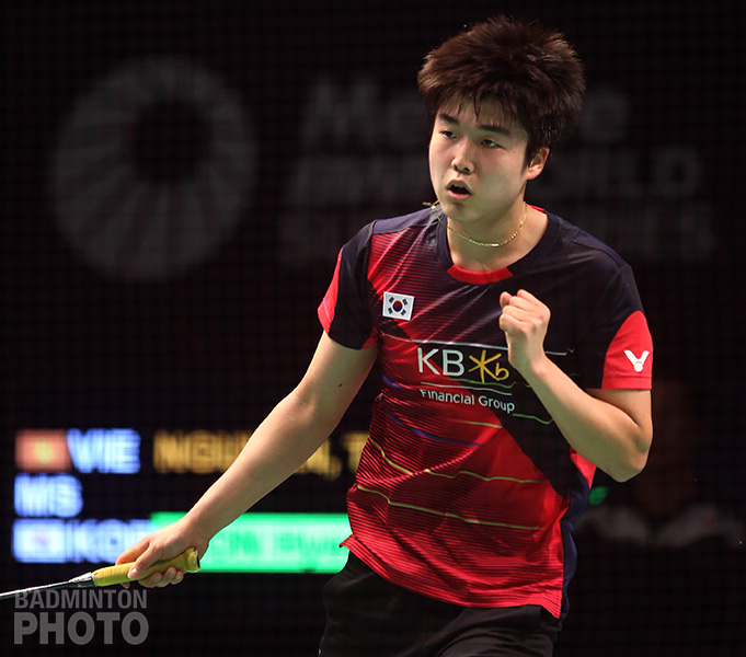 Wide-eyed and taking in all the sights and sounds of his first trip to Australia, Heo’s teammate Jeon Hyeok Jin (pictured top) sent Vietnam’s Nguyen Tien Minh packing, 21-19, 21-14.