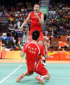 Korea’s two Kims literally have gold in their family names, but they faced a mountain in the form of China’ golden pair, Fu Haifeng and Zhang Nan (pictured), both of whom were 2012 gold medallists, in men’s and mixed doubles respectively. The Kims took the Chinese pair by surprise with their quick pace off the bat, and soon started off with the 1st game, ceding only 11 points.