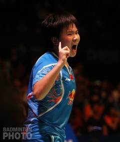 WS: He Bingjiao (CHN) [8] beat Sun Yu (CHN) [7] 21-14, 7-21, 21-18