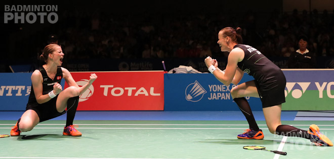 As the world #1 and 2014 champions, Japan’s Ayaka Takahashi / Misaki Matsutomo (pictured below) would have been the heavy favourites for today’s Japan Open women’s doubles final even if they hadn’t beaten their Danish opponents last month in the gold medal match in Rio. But beyond just beating the top seeds, what made this victory for Christinna Pedersen / Kamilla Rytter Juhl (pictured left) even sweeter was that it was done in front of the Japanese fans at home.