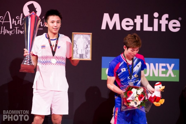 For the second consecutive time, Korea’s Son Wan Ho came into a Superseries final as the heavy favourite against an unseeded, first time finalist. This time, however, not only was Son not playing at home, but the crowd clearly had a soft spot for underdog Tanongsak Saensomboonsuk (pictured).