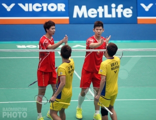 The next two games started out closer but especially in the decider, the tall Chinese youngsters were able to open it up in the latter half. They finished the day but booking a date with World #1 Lee Yong Dae / Yoo Yeon Seong for a repeat of the Asian Championship final.