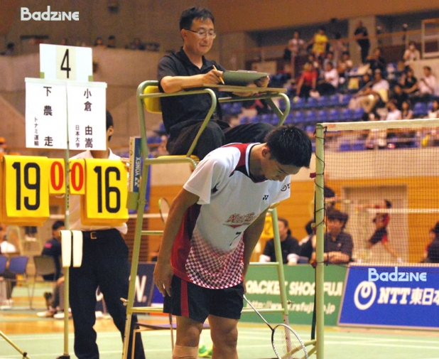 Momota participated as the #8 seed, playing for his corporate team NTT East. In the first round, faced off against Shu Wada, a former team-mate of his on the company team. Momota showed some of the great skill that his fans well remember and won 21-7, 21-8 in straight games.