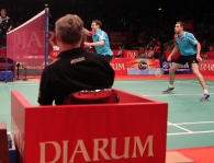 At 16-18 in the rubber, Chou pulled out three consecutive amazing net shots (first a forehand cross, followed an even better backhand cross, and then a straight one) which soon led to match point. The situation was only salvaged for Korea by Hawkeye overturning a line call on the rear perimeter. New world #1 Son Wan Ho stayed cool and won the remaining points and the match against Chou, making it twice in consecutive nights, this time finishing 13-21, 21-18, 23-21.