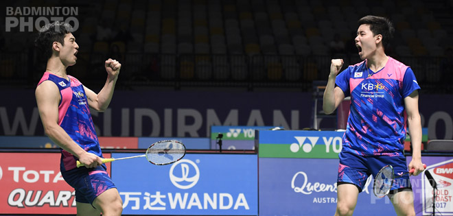Although both sides chose were happy to live and die at this intensity, it cost Jhe-Huei so much because there are more ups and downs due to being emotional whereas the Koreans were only spending physical energy. Chinese Taipei and Korea each fielding different men’s doubles pairings a night later ended up swapping victories through Choi Sol Gyu / Seo Seung Jae (pictured top) going 21-16, 14-21, 21-17.