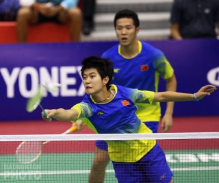 Reigning World Junior Champions He Jiting and Du Yue (pictured right) relegated Singapore’s Terry Hee and Tan Wei Han to third place for the third time in eight months. The Chinese youngsters led 18-14 in the first game but allowed the Singapore pair to catch up and send the game into extra points. He and Du finished on top 23-21 and in the second game, then extra point cushion in their 18-13 lead meant they were able to weather the late run from their opponents and close it out without their opponents tying it up.