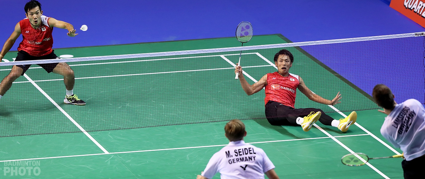 There was still more headaches for men’s doubles seeds as Germans Lamsfuss and Seidel, who in the end were unable to continue their first game control, pushed Takeshi Kamura and Keigo Sonoda (pictured left) to three games.