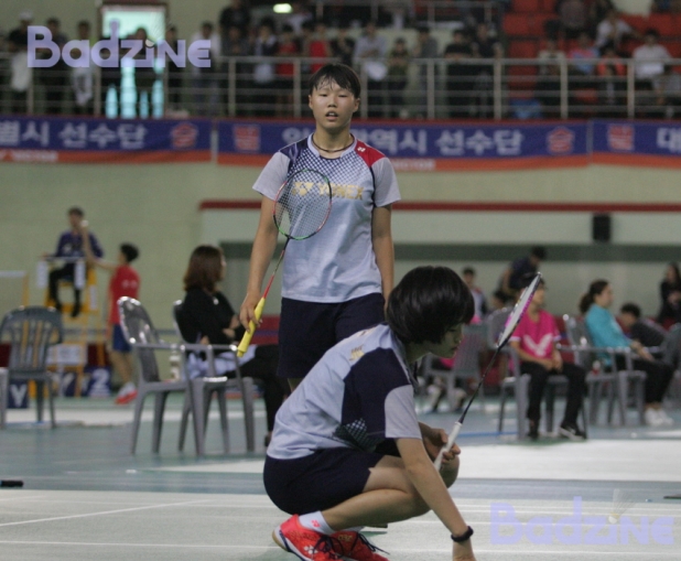 The winners of the high school event this week were Shim Yu Jin / Lee Ye Na (pictured above). They had a shot at the former Asian Junior Champions Du Yue / Xu Ya during last month’s Korea Open but neither will be playing at the World Juniors next week. They were the only shuttlers from host Chungbuk Province to win a title at the NSF so far, however.