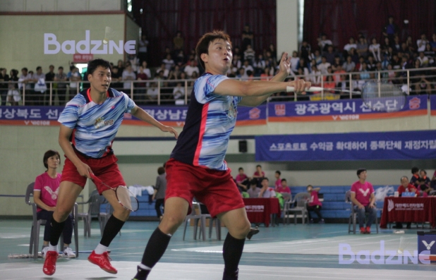 Unofficially retired former world #2 Kim Gi Jung took his second national title of the year with Jung Jae Wook (pictured above). Former world #1 Lee Yong Dae had no luck, as he and Kim Dae Eun lost in the second round to unheralded Lim Jong Geun and Kim Dong Ju (pictured).