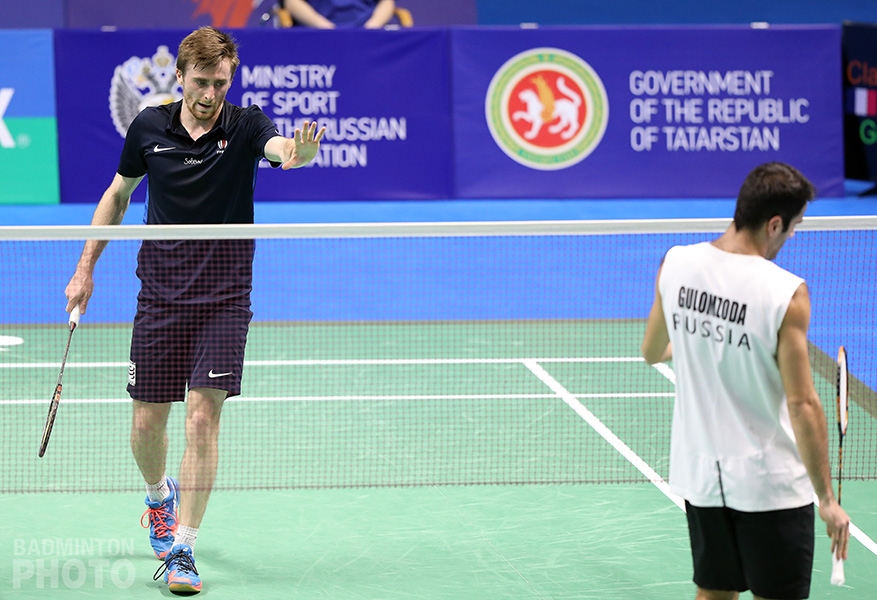 Still, Russia was third highest in the rankings and losing at home is not easy to take when they certainly had a chance to at least make the final four for the first time since 2012. France prevailed on the strength of three singles players, winding up when Lucas Claerbout won his second game 21-6 against Shokhzod Gulomzoda (pictured above) to secure the semi-final spot for his team.