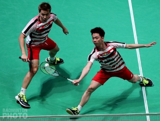At the end of the afternoon, the “Minions” launched the latest scene to show why they are on top of the world chart. They edged Denmark’s Carsten Mogensen and Mathias Boe who, in spite of some great defense were unable to keep up with the incredible pace by the Indonesians Marcus Fernaldi Gideon / Kevin Sanjaya Sukamuljo (pictured left). The diminutive duo displayed the length of their talent as they beat their elder – and taller – opponents 21-18, 21-17 in a rivalry that has had half of its installments so far occur in tournament finals.