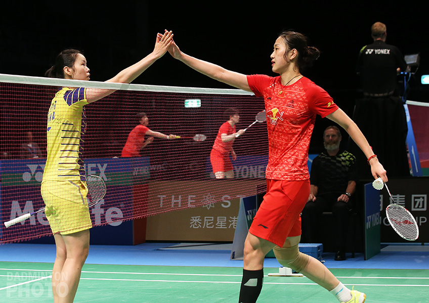 Ahmad and Natsir were not the only World Champions and Indonesia Open titleholders to struggle to finish in straight, but tight games. Chow Mei Kuan has been back with her regular partner Lee Meng Yean after a slight detour to win Commonwealth Games gold with Vivian Hoo. Getting Chen Qinchen and Jia Yifan as their opponents, Chow and Lee tried had a great chance to pull off an upset to make up for their disappointing showing at home last week.