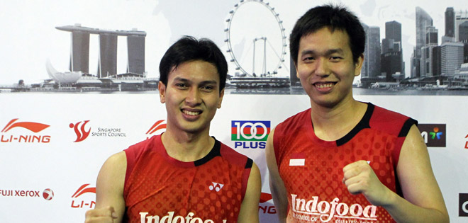 Sukamuljo/Gideon managed to contribute their point by beating Takeshi Kamura / Keigo Sonoda in straight games, having recovered from the upset dealt them by the Japanese pair at the recent World Championships, where the Indonesians were overwhelming favourites to win the title
