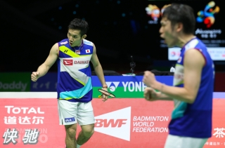 The quarter-finals at the 2019 Sudirman Cup ended completely free of upsets but they were not without drama, especially when top seeds Japan met Indonesia in the early session on Friday in Nanning. Japan perhaps took a bit of a gamble in starting with their top pair Takeshi Kamura and Keigo Sonoda (pictured right) at men’s doubles. The world #2 had never beaten Ong Yew Sin / Teo Ee Yi prior to Friday, while the Malaysians were winless in 4 matches against Japan’s second pair.