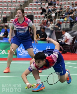 It wasn’t going to be easy. On the other side of the net was 2013 winner Yu Xiaohan of China. Granted, she made it to the semis this year not with Huang Yaqiong the current mixed doubles world #1 who was her regular partner in those days, but with a new Huang. Yu and Huang Jia (pictured right) had already won three tough matches, including a narrow win over the reigning World Junior Champions who recently made it to their first Super 500 semi-final.