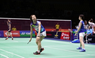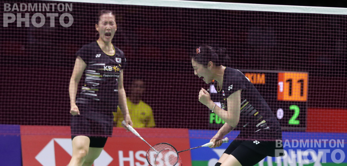 That changed on Thursday, however, when Chang and Kim stormed to a 21-15, 21-9 victory over Yuki Fukushima / Sayaka Hirota (pictured above), adding injury to insult after the Japanese pair slipped again from the #1 spot in the world rankings. While Chang Ye Na has extensive experience playing against the world #2 – winning only 6 of 14 matches against them in the past 4 years, with 2 different partners – it was the first the first time playing them for her new partner Kim Hye Rin.
