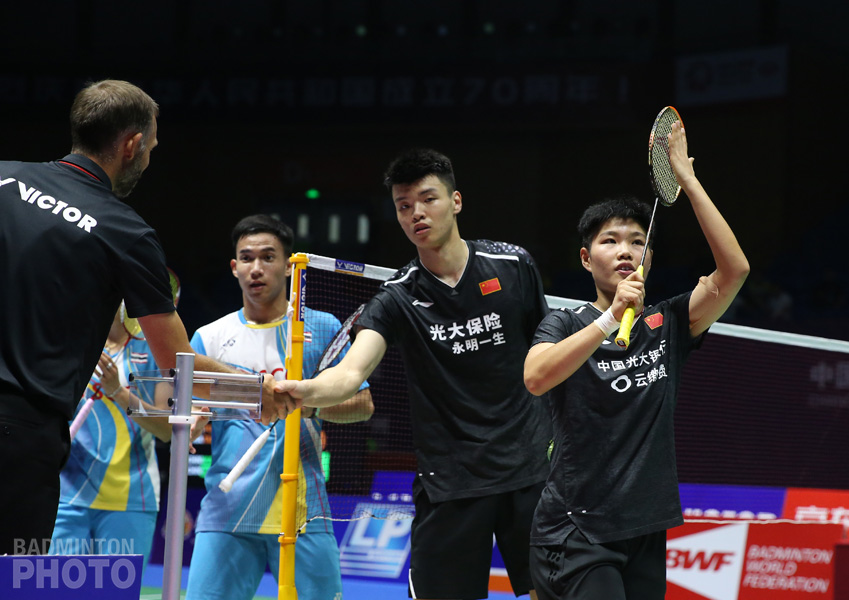 The day began in Changzhou with two easy wins for China’s to mixed doubles pairs. Wang Yilyu and Huang Dongping (pictured bottom) had none of the troubles that plagued them in the World Championships when they faced Thailand’s Dechapol Puavaranukroh / Sapsiree Taerattanachai. Seo Seung Jae and Chae Yoo Jung still have yet to win a game from two-time World Champions Zheng/Huang and the world #1 and #2 pairs will meet in a major final for the 8th time in under 2 years.
