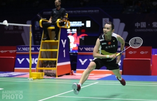 It was a very different pattern as Tai Tzu Ying (pictured right) re-asserted her dominance over Chen Yufei. Chen got the home crowd’s hopes up as she romped to a 21-6 win in the opener, only to watch Tai even things up in the second. Tai coolly moved out to an ominous lead with a 6-point run late in the deciding game but Chen managed to get to match point first. Tai held on, though, and grabbed the last 3 points in succession to deny Chen a chance to face Marin in a repeat of last year’s final.