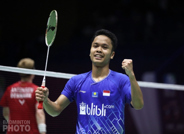 Matsutomo/Takahashi were only the last of the defending champions to book their spot in the 2019 China Open finals. Immediately before they stepped on court, Anthony Ginting (pictured above) made sure that 2019 would see a repeat of last year’s men’s singles final.
