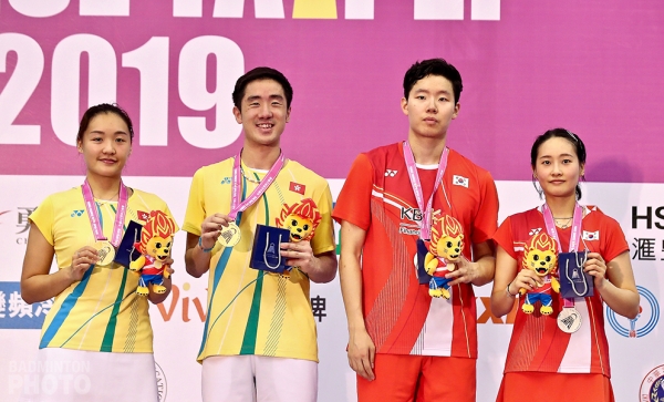 The day had got off to a dismal start for Korea. Seo Seung Jae had won the mixed title here back in 2017, the same day his partner Chae Yoo Jung won the women’s doubles title. They were slim favourites to take the title together today but Hong Kong’s Tang Chun Man / Tse Ying Suet (pictured bottom) were having none of that.