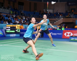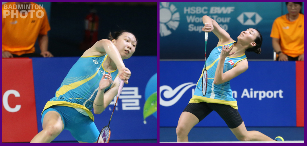 Both Canadian women’s doubles pairs in action in Incheon on Wednesday featured a lot of jump smashing. In this match, it was Kristen Tsai doing most of the leaping, while her compatriot Catherine Choi spent much of her match airborne as well, though she and Josephine Wu were unable to do much to inconvenience Japan Masters winners Sakuramoto/Takahata.