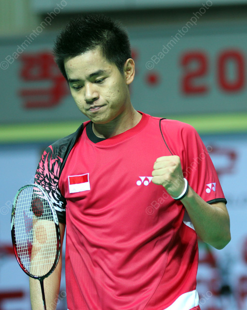 In the second game, they again got out to a promising 8-1 lead but Hiroyuki Endo / Yuta Watanabe (pictured bottom) didn’t give up. They used their defense to try to make the pace suit their style. This tactic worked well and Sonoda’s attacks lost some of their edge. Watanabe/Endo got the second game 21-18 then ran away with the decider. After the match, Sonoda didn’t appear in the prize ceremony because he needed to recover physically.