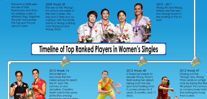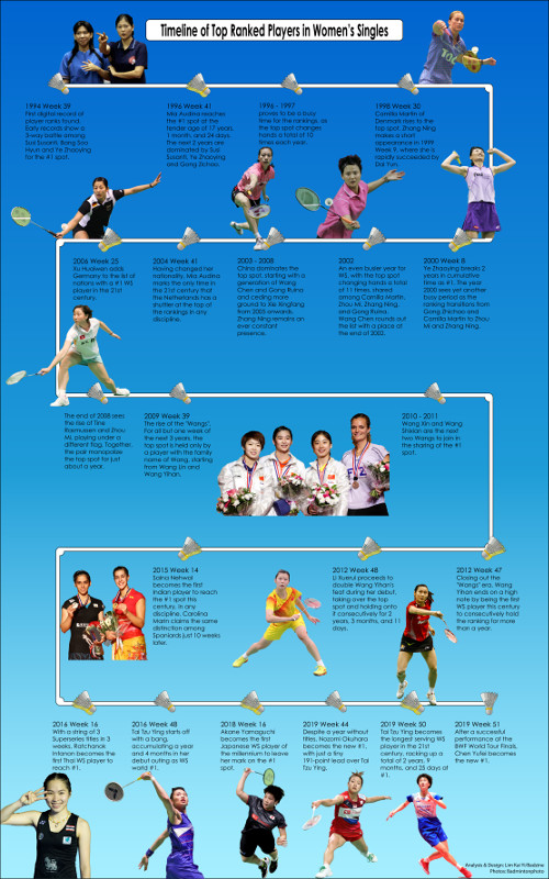 ![The top of the charts, through the years – Women’s Singles So many changes over the past 26 years of world #1s in women’s singles. Who was on top when and for how long? When did your favourite player first make […]](https://www.badzine.net/wp-content/uploads/ngg_featured/WS-Timeline-rotator.jpg)