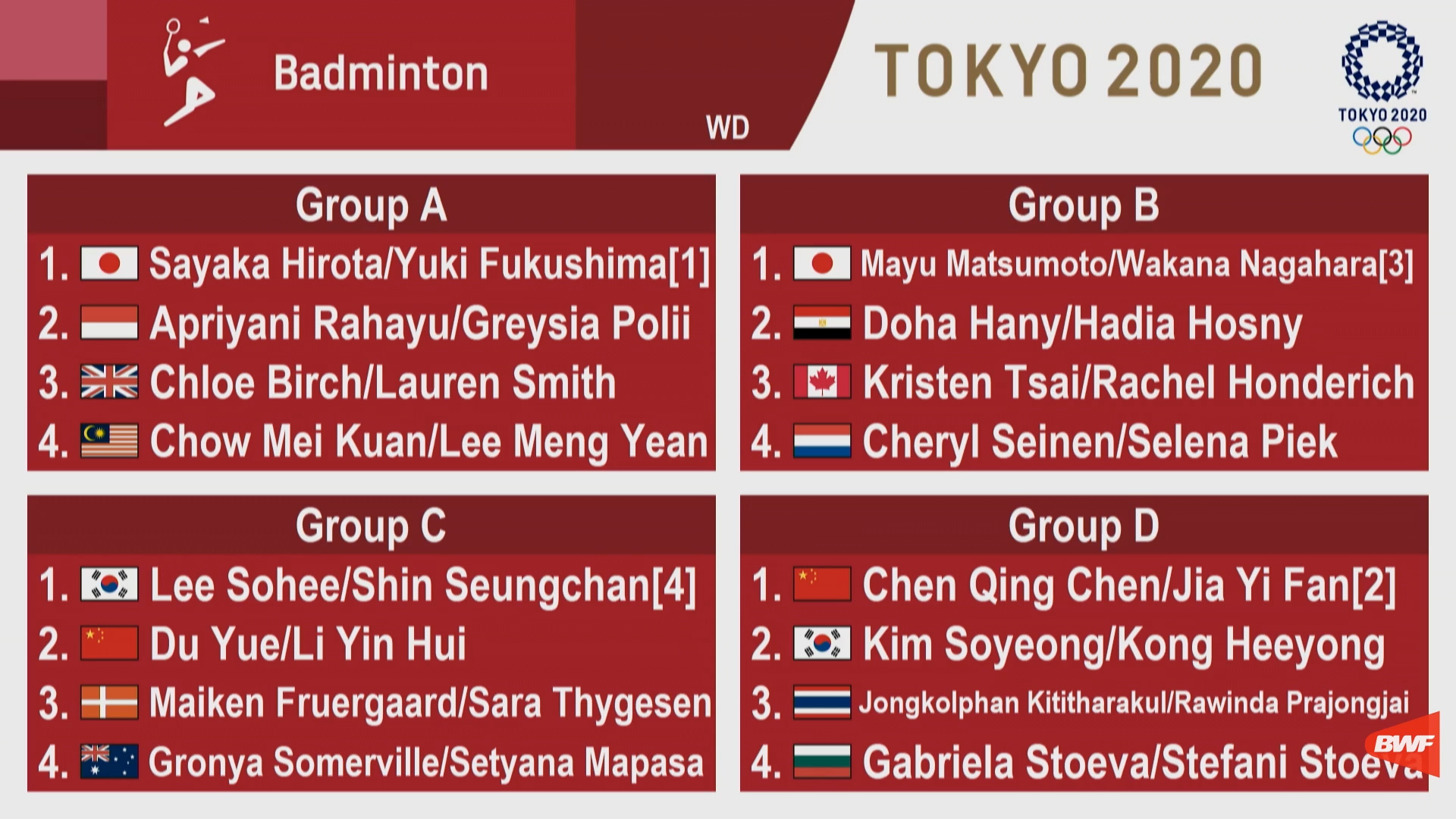 Entering the Olympic women’s doubles competition with the first and third seeds belies Japan’s dominance in this discipline over the past few years. With over two dozen Superseries or equivalent titles, two World Championships, and Asian Games silver all since Matsutomo and Takahashi won gold in Rio, the Japanese podium success is close to rivalling China’s at the height of its women’s doubles power. In early 2019, Japan accounted for half the pairs in the world’s top ten.