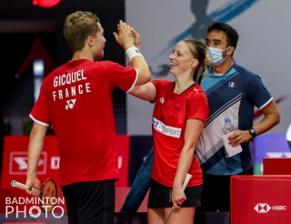 Another surprise came from the French pair, Thom Gicquel / Delphine Delrue (pictured right), who managed to win easily over the Tokyo Olympic semi-finalists, Tang Chun Man / Tse Ying Suet. The world #11 pair from Europe managed to secure a place in the semi-finals after winning 21-15, 21-10 in 42 minutes.